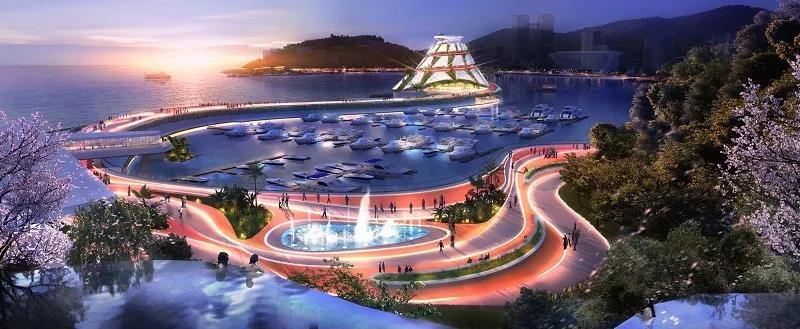 In the scheme, the concept of "boundless new marine paradise" is put forward. Based on the fractal theory and the integrated design of land and sea, and considering the ecological protection, disaster prevention and the feasibility of engineering technology, the sea area utilization mode is innovated to expand the limited space of Xiaomeisha resort.