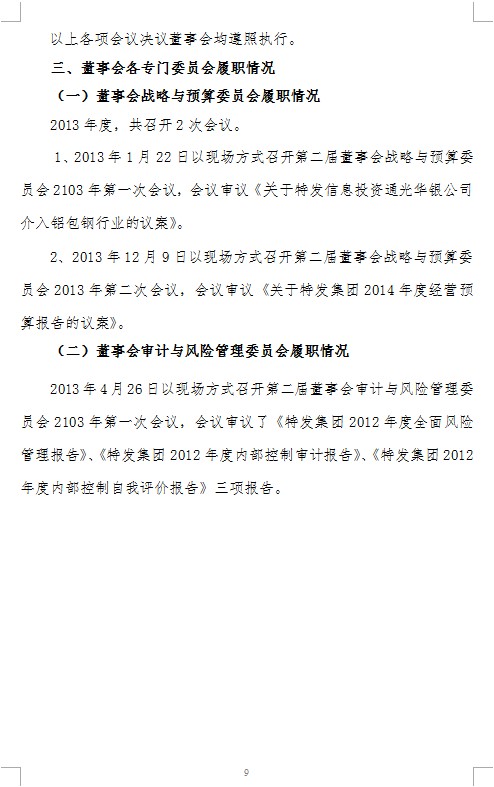 科學(xué)規(guī)范決策,推動戰(zhàn)略實施——特發(fā)集團2013年度董事會工作報告